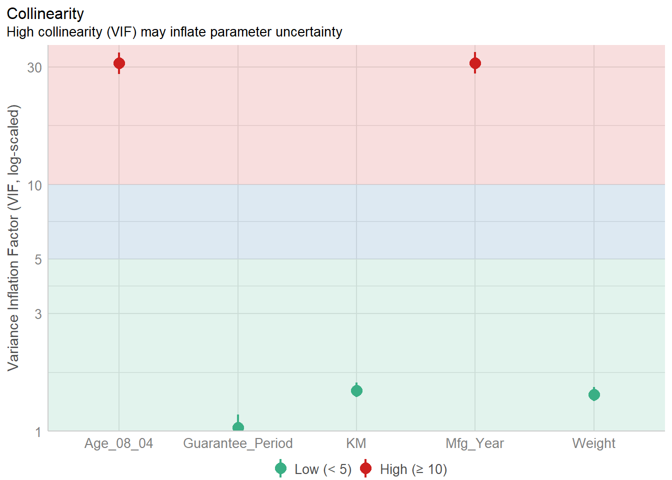 model <- lm(Price ~ Age_08_04 + Mfg_Year + KM + Weight + Guarantee_Period,